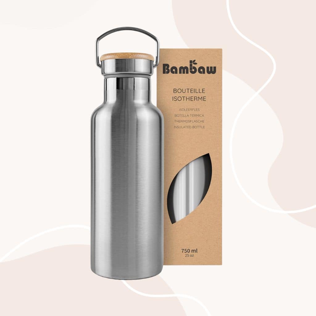 L’objectif premier de la marque Bambaw et de son équipe est de réduire au maximum leur impact environnemental en s’inscrivant dans une démarche zéro déchet. Bambaw propose ainsi une bouteille en inox classique ou une bouteille isotherme au design similaire qui garde vos boissons chaudes pendant 12 heures ou bien fraîches pendant 24 heures.